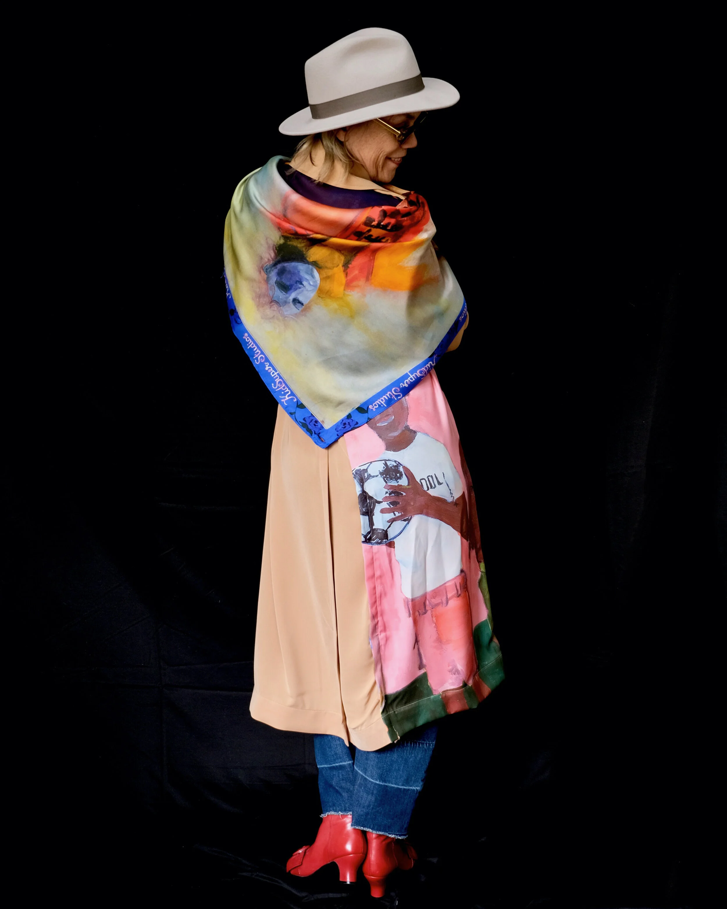 I’m excited to show you my new, artful trench coat. And also introduce you to the Brooklyn, NY designer of this trench coat, @kidsuper. He is joyful, thoughtful, full energy and all things good. Lots to discover on his IG account, and website www.kidsuper.com. Photos by @robert.gelber. I discovered his designs during a music photo shoot I was invited to participate in last year. The music artists were wearing some of his designs. The styles spoke to me, in a huge way. I quickly discovered they sold out quickly and you had to be on top of your game to purchase. I’ve been lucky to collect three pieces, so far! This trench coat is good fun. You will see how the scarf buttons on, and then can also be unbutton to change the look in oh so many ways. It’s a very soft fabric, and is dreamy to wear. I dig the way he incorporates performance art into his life and makings too. His collection also hit the Paris Fashion Week runways. I hesitate to explain more because my words don’t do him justice, go check it out. Enjoy discovering @kidsuper.
